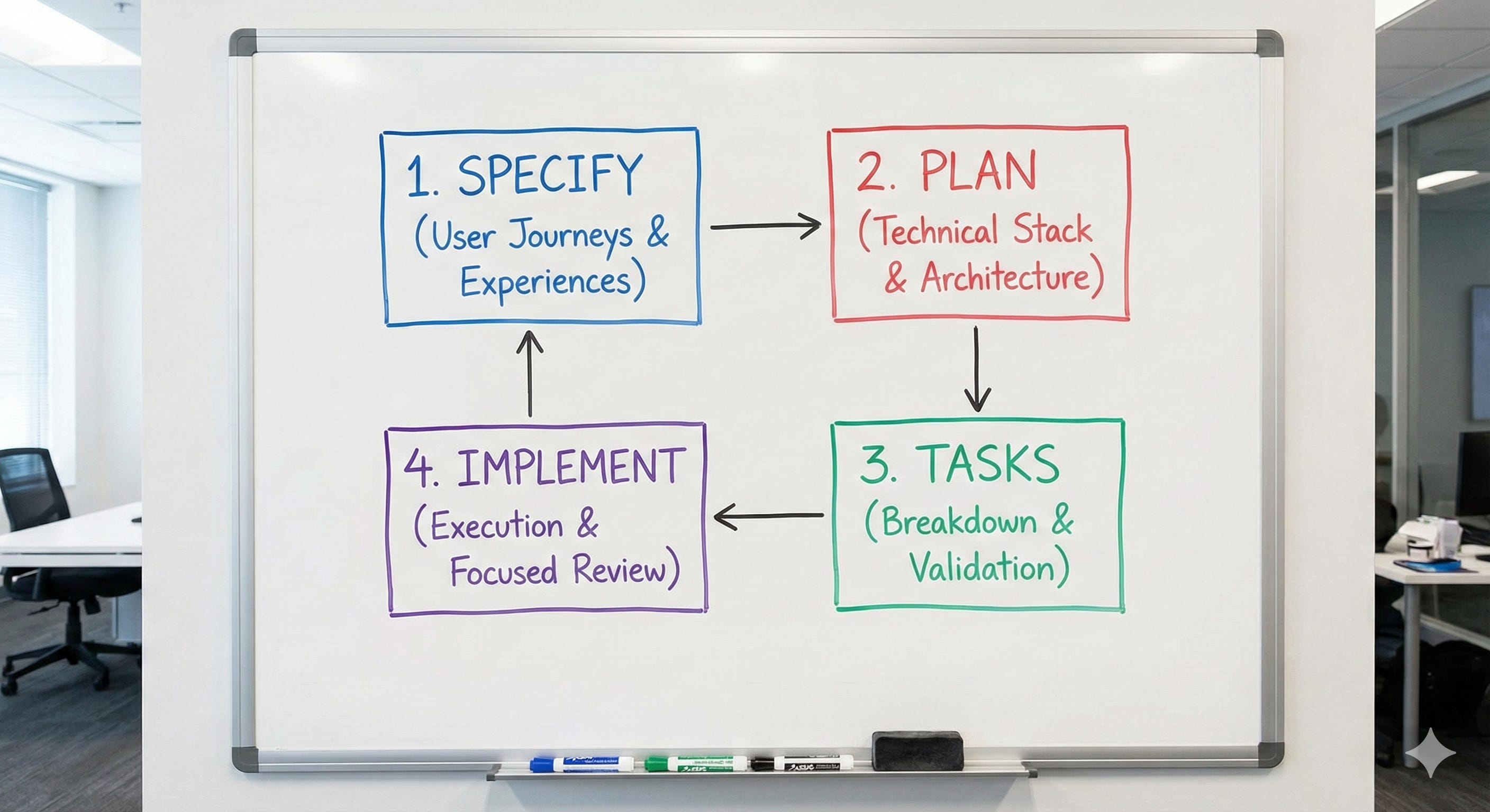 The coding agent knows what it’s supposed to build because the specification told it. It knows how to build it because the plan told it. And it knows exactly what to work on because the task told it.