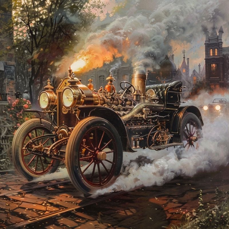 The below image was created by Midjourney, an AI image generation model depicting the first internal combustion engine that led to the production of cars!