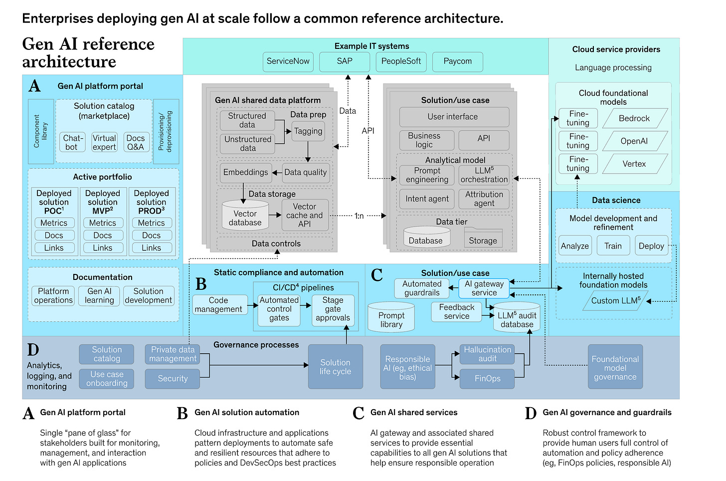 McKinsey’s latest reference architecture makes this clear: the foundation isn’t the model; it’s the platform a portal, reusable services, and automated guardrails.